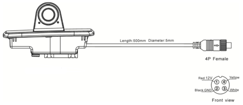 PAL System, 1080P, 120°, 12V, IP69K, 4 Pin kamerakontakt.